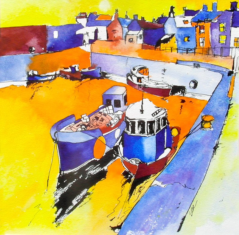 Cornish Bouys: acrylic and collage on canvas 60x60